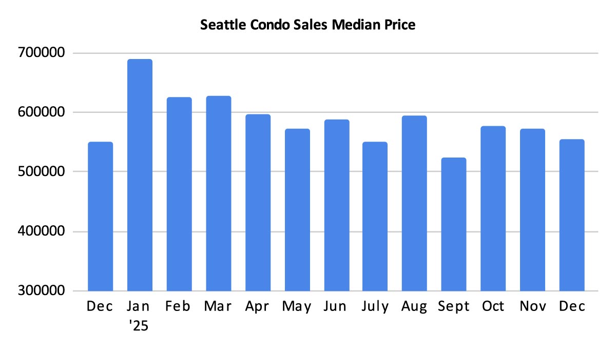 The Seattle condo market closed out 2025 on a high note. Median selling prices and unit sales improved in December. That bucked the historic trend with December being the slowest month for sales and with lower selling prices.